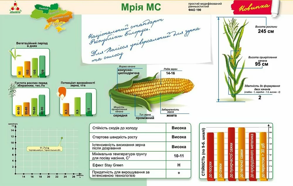 Характеристики кукурудзи Мрія МС Маїс