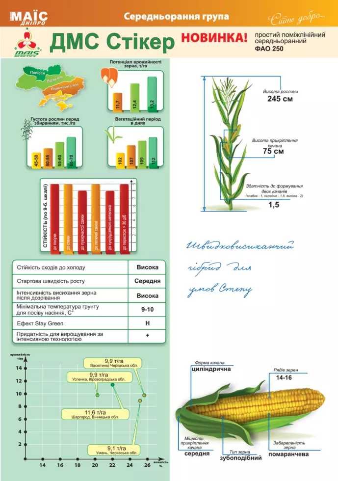 Характеристики кукурудзи ДМС Стікер Маїс